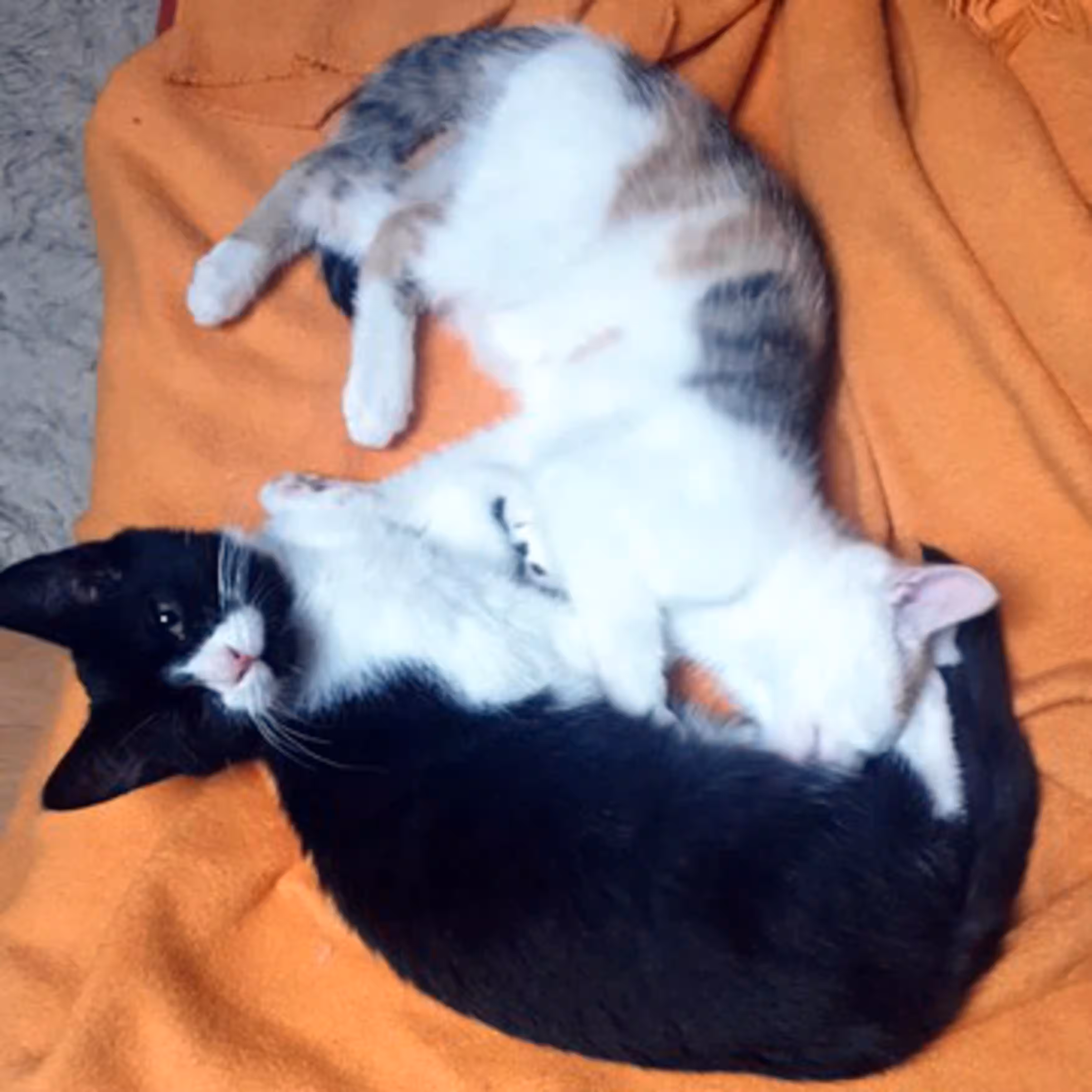 Unsere Hoffnung war, dass Mukki und Bobby sich zumindest tolerieren würden und es keinen Streit gibt. Doch wir wurden positiv überrascht: Bereits am zweiten Tag spielten die beiden miteinander, und in der dritten Nacht kuschelten sie gemeinsam auf dem Sofa. Eine Verbindung, die wir in dieser Schnelligkeit nicht erwartet hätten. Vielleicht liegt es auch an ihrem ähnlichen Schicksal – beide wurden mit nur vier Wochen mutterseelenallein von der Straße gerettet. Dieses Band scheint sie zu verbinden.