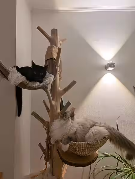 Also haben wir uns bei Kitty München in Erding umgesehen. Eigentlich mit dem Plan, einen anderen schwarzen Kater kennenzulernen. Vor Ort kam es dann aber ganz anders: Wir haben Mo (damals hieß er noch Willi) getroffen und das war’s dann auch schon. Es hat einfach gefunkt. Mo hat uns erst ausgiebig beäugt, sich dann aber doch zu uns getraut, um neugierig unsere Füße zu beschnuppern. Da wussten wir sofort: Der ist frech, neugierig – den nehmen wir mit!